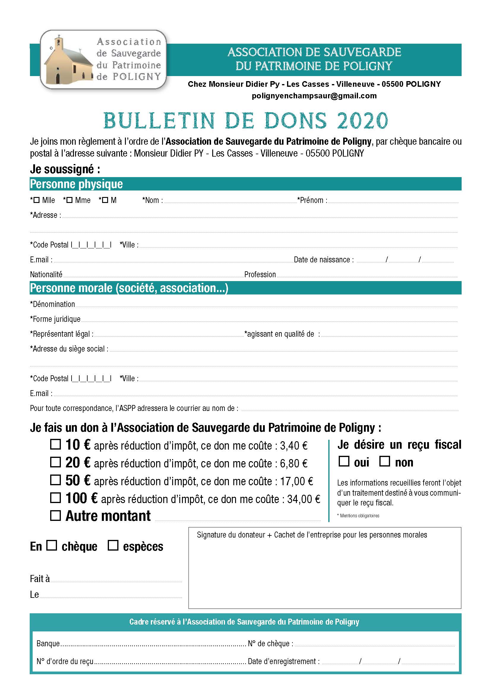 DéfiscalisationTout don donne lieu à l’envoi d’un reçu fiscal adressé à l’émetteur s'il le désire...
